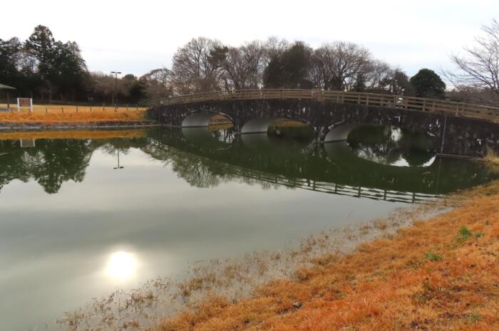 大沼の中心にあるひょうたん島と岸を結ぶめがね橋