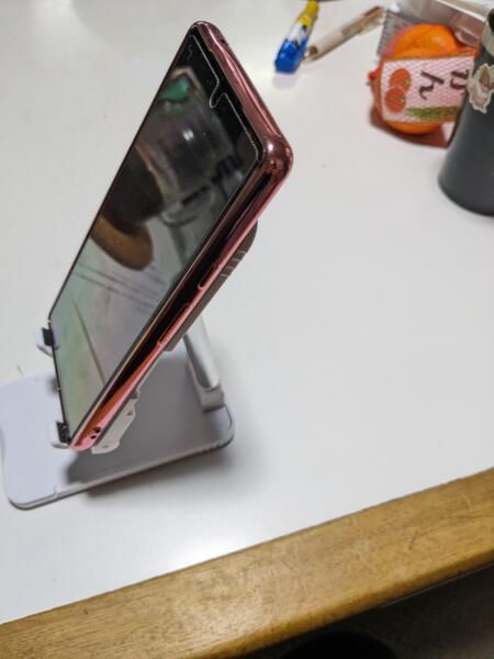 皆んなが集まった中央にスマホを置き、遠くの仲間とスマホ越しに会話を楽しむ。
