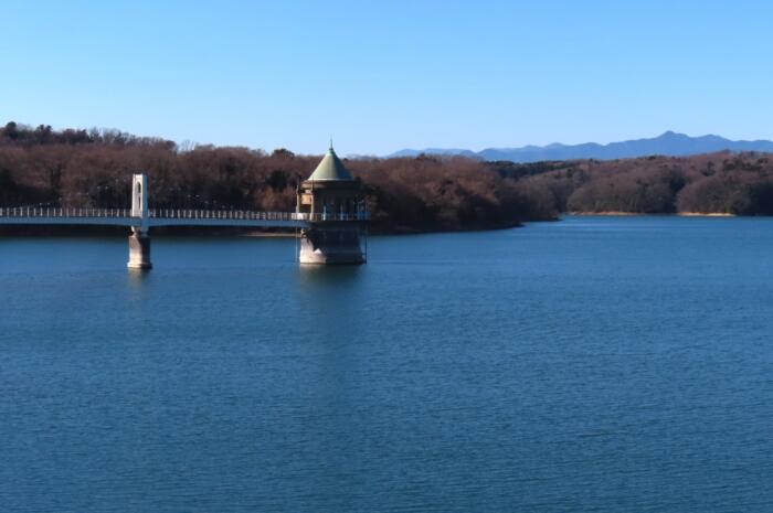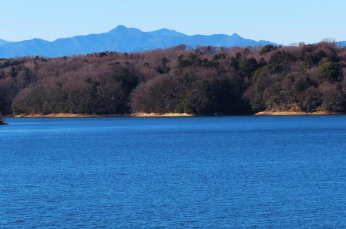 狭山湖(山口貯水池)越しに奥多摩の山々を望む