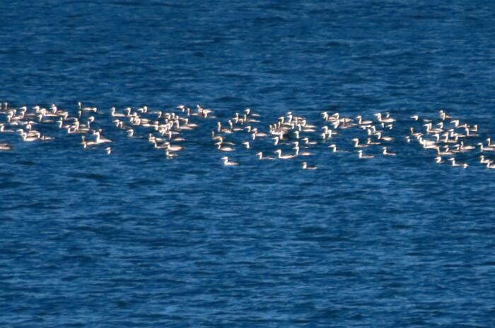 数百羽のカンムリカイツブリが狭山湖(山口貯水池)で羽を休めていた