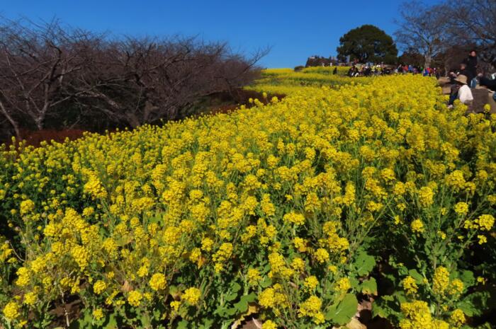神奈川県中郡二宮町の吾妻山公園の菜の花が見頃を迎えたので散策を兼ねて本日観に行って来ました、晴天に恵まれ相模湾、伊豆大島、伊豆半島、箱根、富士山、丹沢と素晴らしい景観のなか鮮やかな黄色に染まった公園を散策してきました。
