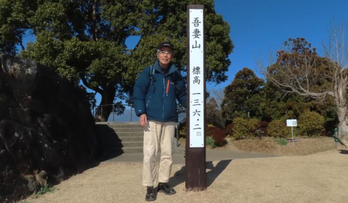 吾妻山山頂に設置されている三等三角点 (山西) 135.87m