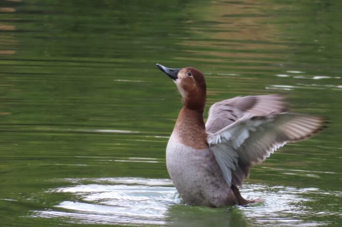 ホシハジロの昼寝(一羽目覚めた時の伸びをしています)