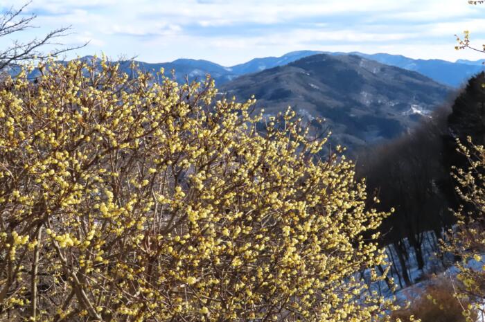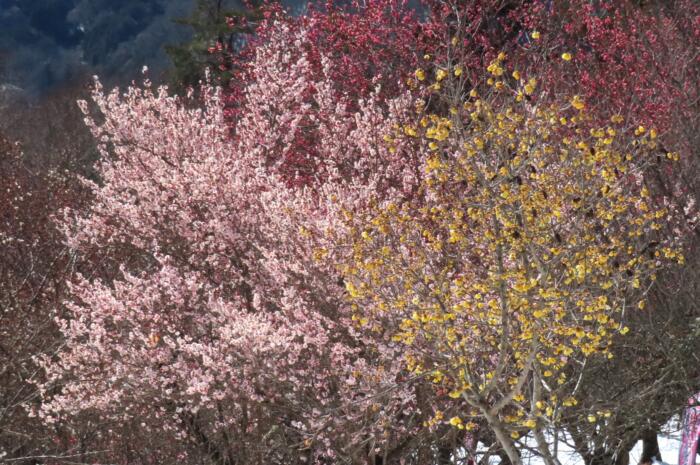 朝から晴天に恵まれたので宝登山のロウバイを見に行って来ました、透きとおるような淡い黄色の花を咲かせるロウバイと残雪。宝登山頂一体には3種約3,000本のロウバイが7分咲位になり一帯が甘い香りに包まれていました。晴天に恵まれ周囲の山々など眺望も楽しむ事も出来ました。