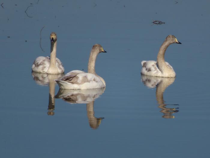 仲の良いオオハクチョウの幼鳥