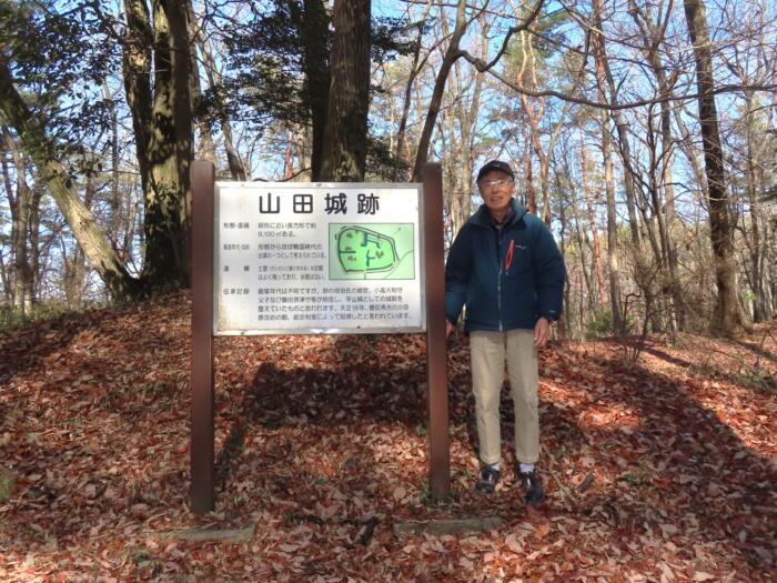園内にある山田城址 忍城主成田氏のゆかりのお城です、堀割などの遺構もあります