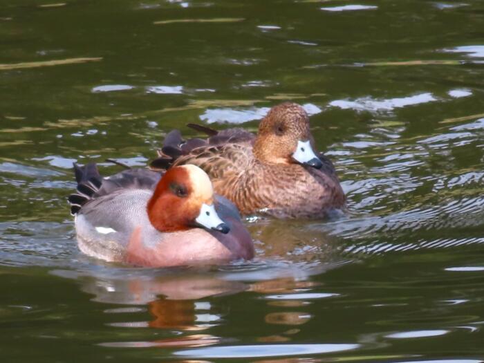 ヒドリガモ(冬鳥)のカップル 右がメス、左がオス