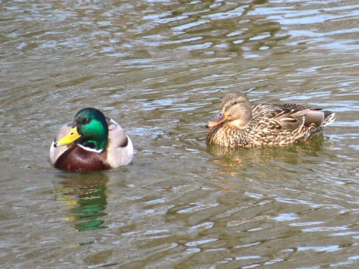 マガモ(冬鳥)のカップル (右がメス、左がオス)