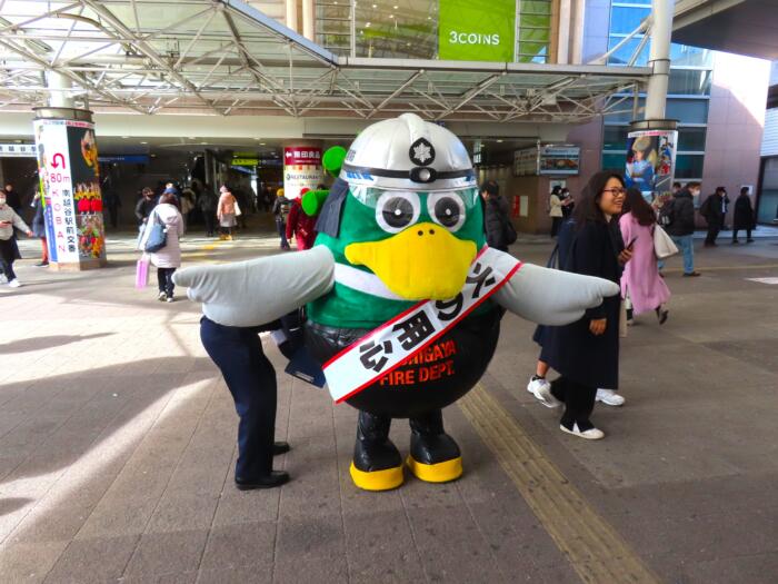 南越谷駅ローターで火災予防のキャンペーンをしていた越谷特別市民「ガ―ヤちゃん」