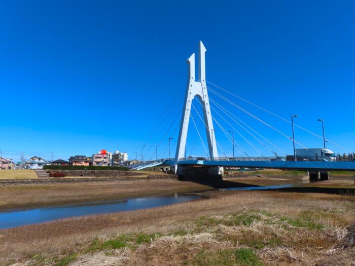 元荒川と葛西用水にまたがる「しらこばと橋」越谷のシンボル的橋です