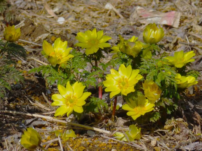 越生梅林内に咲いていた福寿草