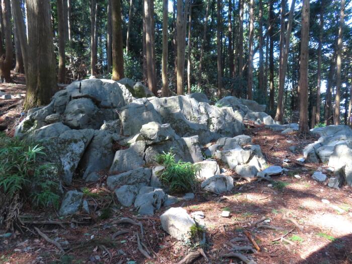 大高取山の中腹にある「白石様」石灰岩の岩塊の露頭