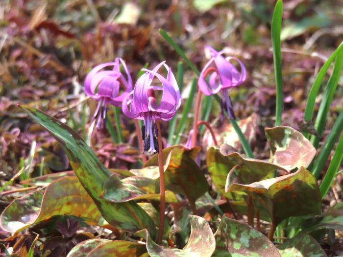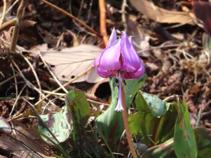 群馬県みどり市笠懸町岩宿にある稲荷山の北斜面に自生するカタクリが見頃を迎えたので観に行って来ました。カタクリは「初恋」という花言葉になります、下向きに花を咲かせる姿が、恥じらって自分の気持ちをうまく伝えられない恋心を抱く乙女を想像させることに由来しています。また、「寂しさに耐える」も同様に、下向きに咲く花の姿が、耐え忍んでいるように見えることにちなみます。