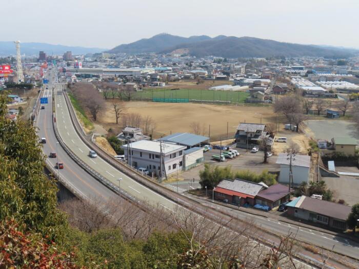 琴平山展望台より大間々扇状地と茶臼山(八王子山稜)方面を望む