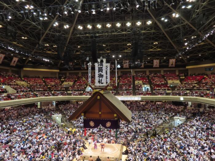 大相撲のチケットが手に入ったので昨日五月場所13日目を観戦しました、少しばかり早めに出掛けて国技館近くにあります旧安田庭園と刀剣博物館へも立ち寄り鑑賞してきました。 アイキャッチ画像は満員のお客様が入った両国国技館 大相…