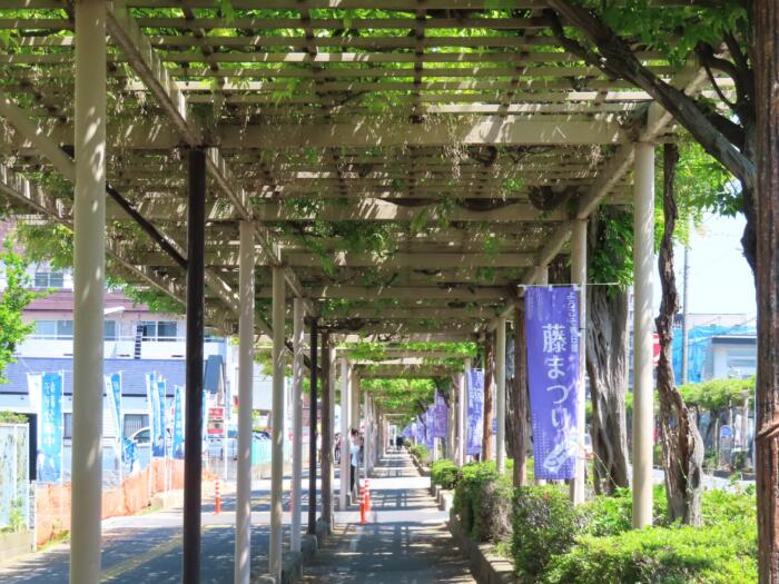 春日部が誇る「ふじ通り」、藤棚が総延長約1.1キロメートルに渡って続いています