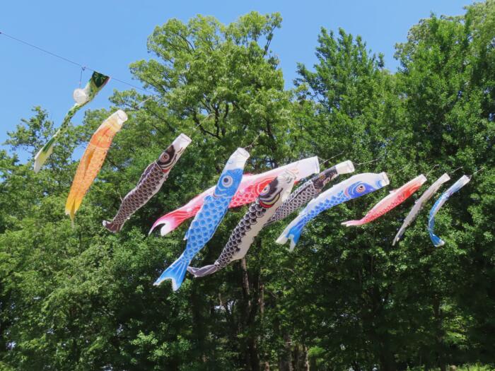 北本市子供公園内で元気よく泳ぐ鯉のぼり