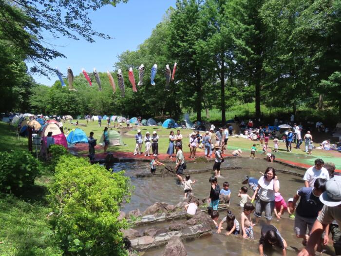 北本市子供公園じゃぶじゃぶ池で楽しんでいる子供たち