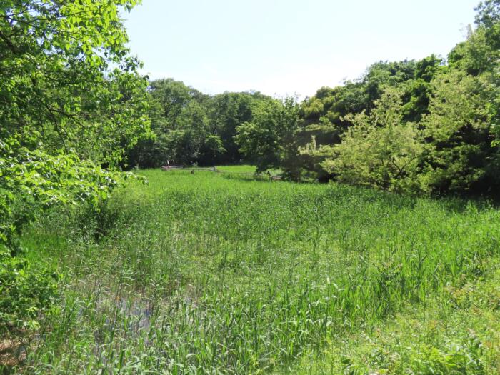 自然観察園内ヨシ等が生い茂るカワセミ池付近
