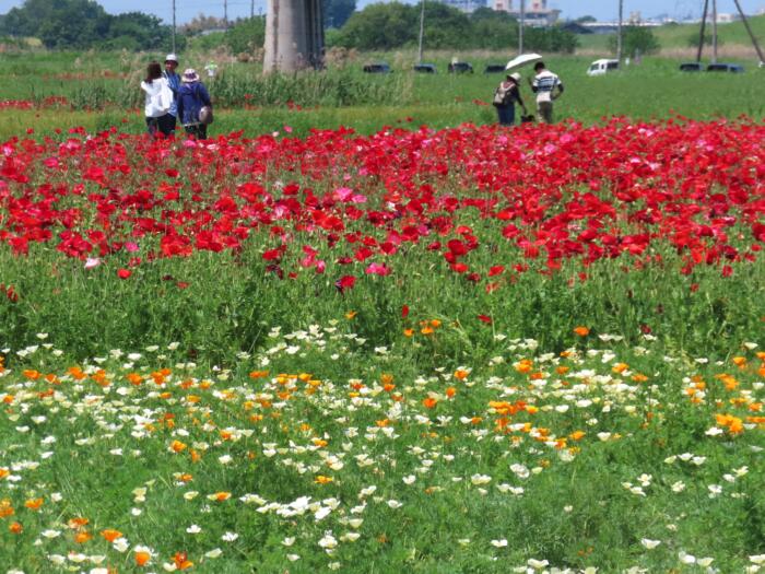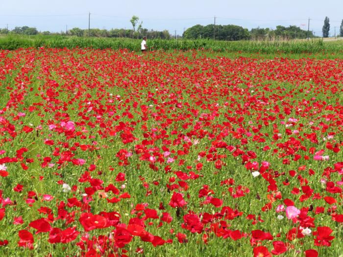 アイキャッチ画像は広大な河川敷に広がる馬室ポピー会場