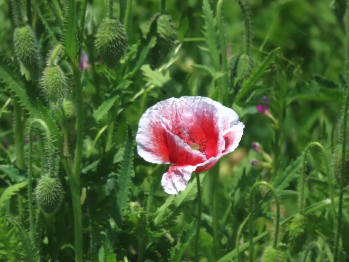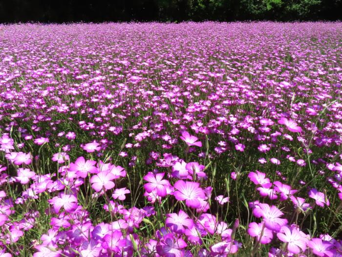 馬室会場に隣接して咲くアグロステンマ    (別名:麦なでしこ)