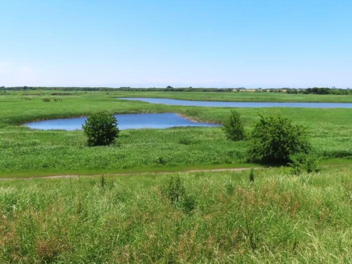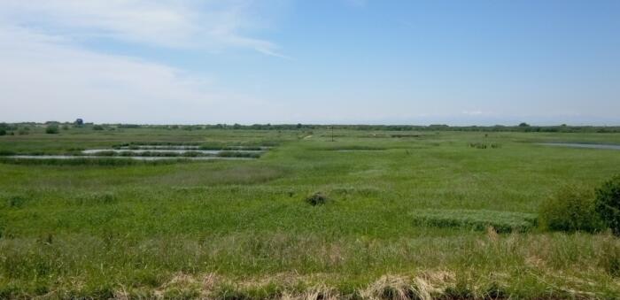 人工巣塔が設置されている周囲の渡良瀬遊水地の景色 中央奥にあるポールが人工巣塔です