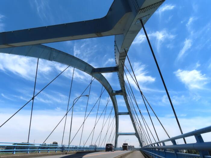 思川に架かる松原大橋の大きなアーチ形状