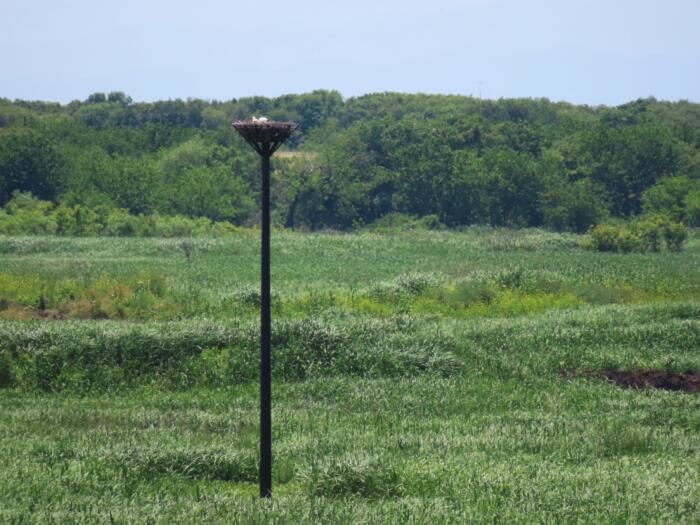 人工巣塔が設置されている周囲の渡良瀬遊水地の景色 中央奥にあるポールが人工巣塔です