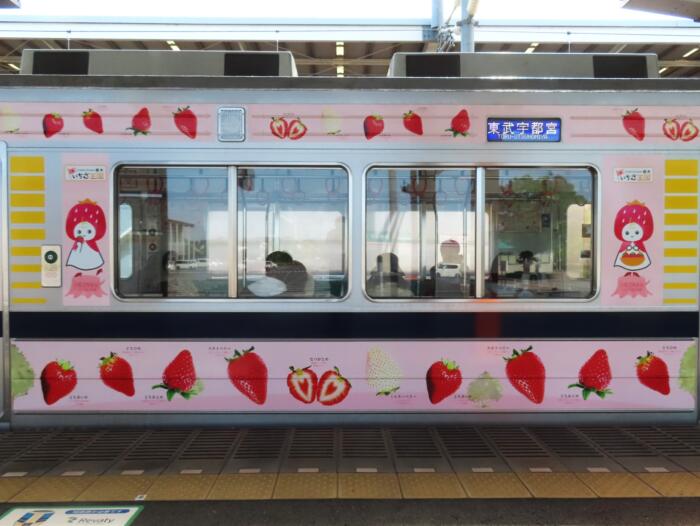 イチゴでラッピングされた東武20000系車両