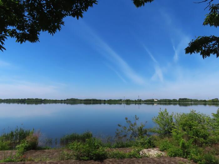 通常期の満水期を迎えた渡良瀬遊水地谷中湖