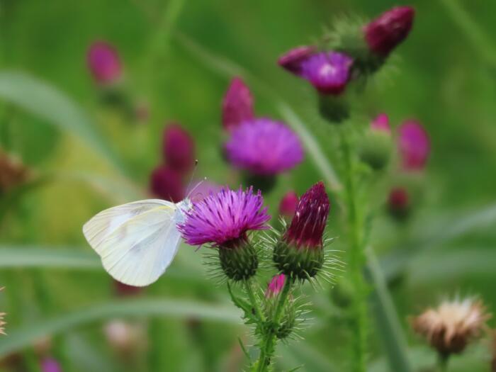キツネアザミに戯れるモンシロチョウ