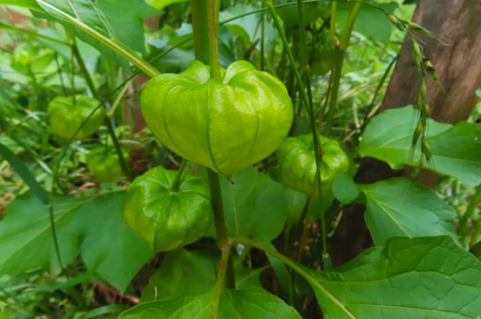 出来て間もないほおずきの果実( 緑色から徐々に朱色になります)
