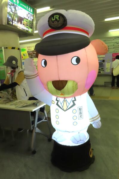 受付で出迎えてくれたJR千葉支社キャラクターの「駅長犬」