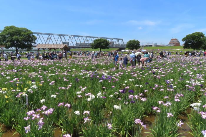 江戸川河川敷に広がる「小岩菖蒲園」100種50000本とも言われています