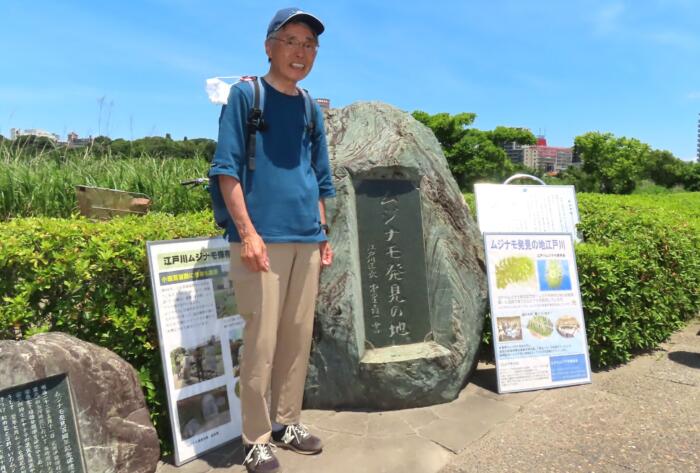 小岩菖蒲園内に設置されている「ムジナモ発見の地碑」牧野博士がムジナモを最初に発見した場所になります