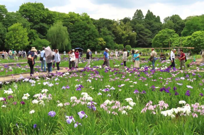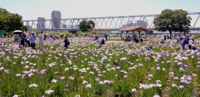 駅からハイキング「ぶらり小岩下町情緒と花菖蒲の名所を訪ねる」に参加、スタートは総武線小岩駅⇒サンロード商店街⇒小岩神社⇒蔵前橋通り⇒御番所町跡⇒小岩菖蒲園⇒ムジナモ発見の地碑⇒善養寺(影向の松)→柴又街道⇒フラワーロード…