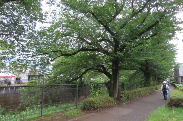 残堀川に沿って桜並木が続く「残堀川遊歩道」