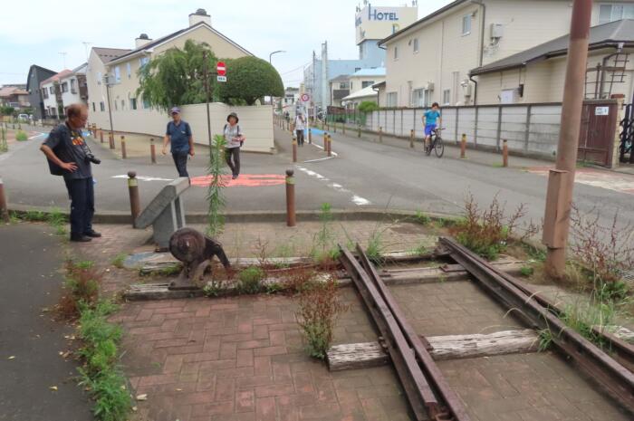 立川飛行場へ資材搬入として設置された「中神引込線」の一部を残して作られた「廃線跡モニュメント」昭和53年に廃線