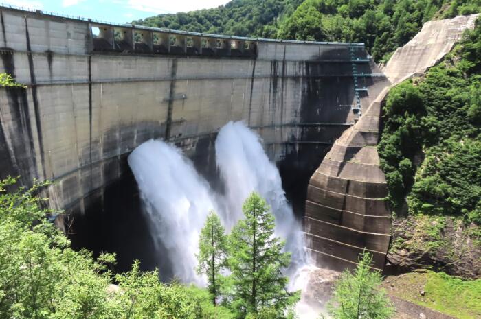 黒部ダム堰堤から後立山鳴沢岳方面を望む