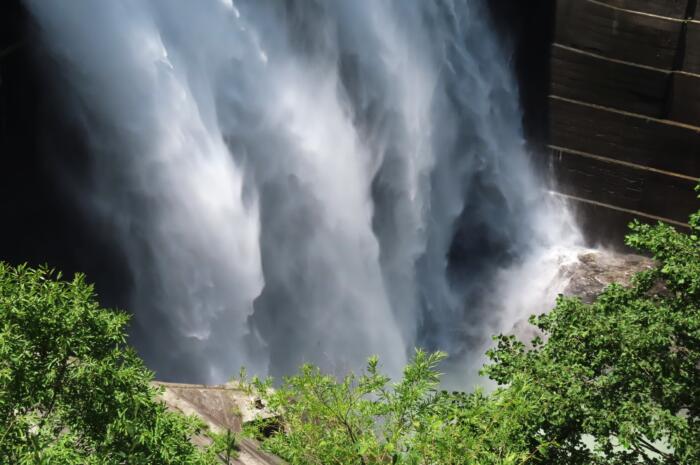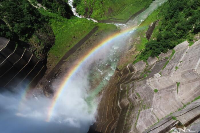 ダム堰堤より観光放水で発生する霧に虹が出ていました