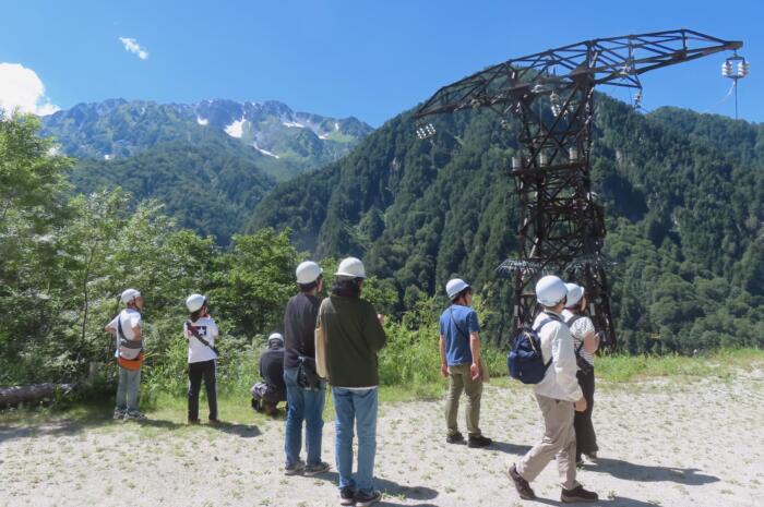 立山黒部アルペンルート開通時の黒部ダム駅についての説明風景