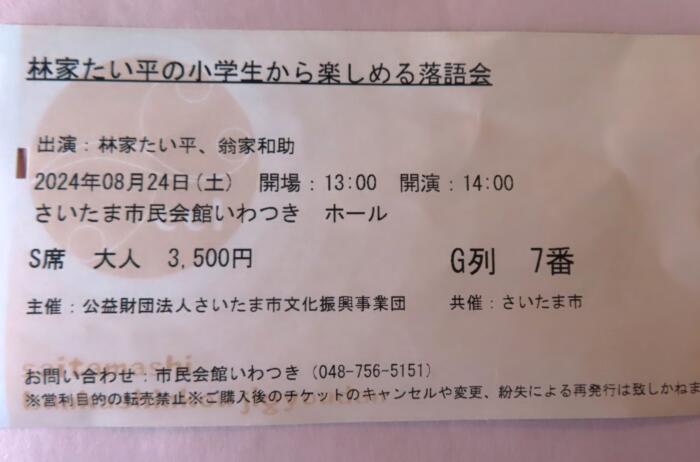 (公財)さいたま市文化振興事業団主催の「林家たい平の小学生から楽しめる落語会」に参加してきました、会場は岩槻城址にある「さいたま市民会館いわつきホール」にて開催されました。子供たちにも解りやすい落語の楽しみ方をはじめ終始笑えるお話ばかりで楽しい一時を過ごして来ました。