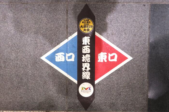 大宮駅商店街の東西境界線 毎年綱引き大会で境界線の位置は変わります