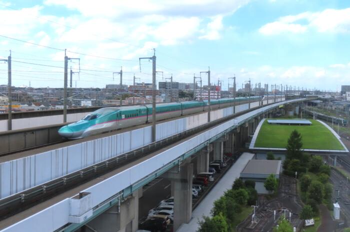 鉄道博物館北館パノラマデッキから見るE5系新幹線