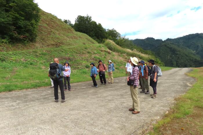 奥只見丸山コースでガイドさんの案内を聞き入るBグループ