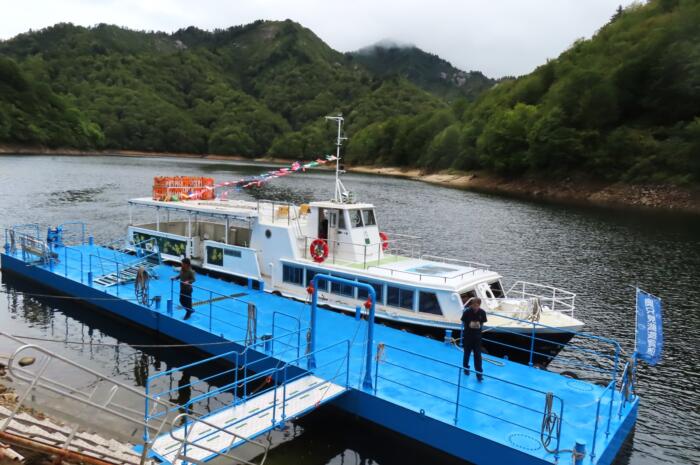 アイキャッチ画像は奥只見湖を進む遊覧船から離れていく奥只見ダム