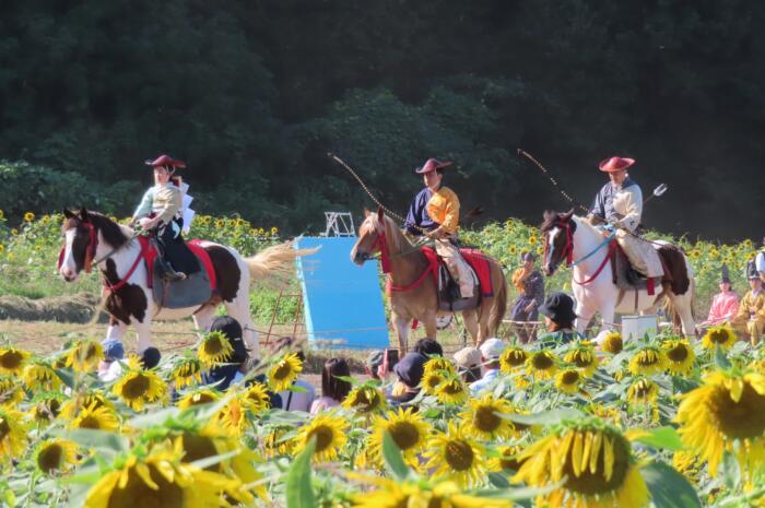 開花に合わせて開かれている ひまわり祭りで行われた「流鏑馬」