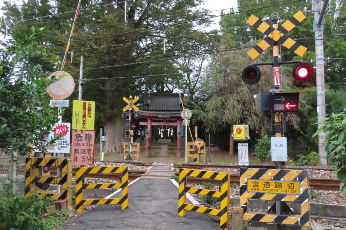 寺塚鷲神社の参道を宇都宮線が横切っている「宮前踏切」