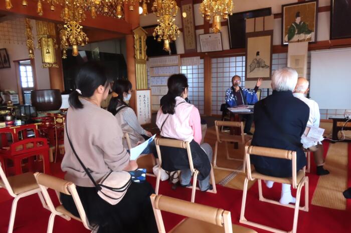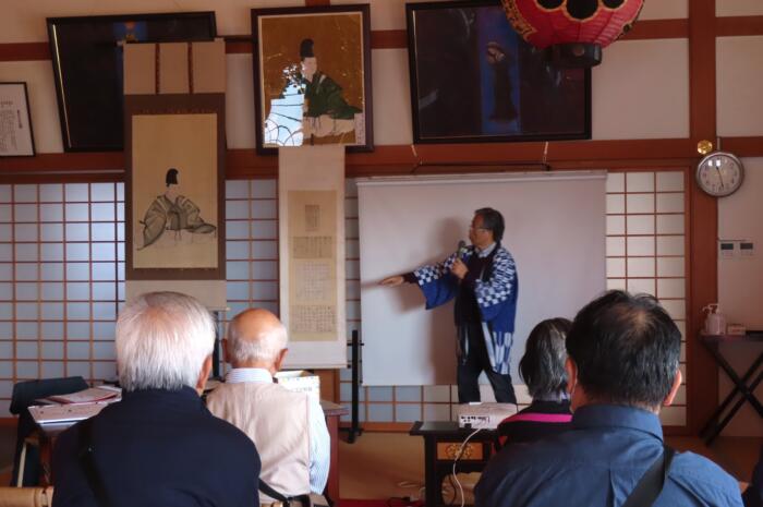 観福寺本堂内で新井白石公について 講演①