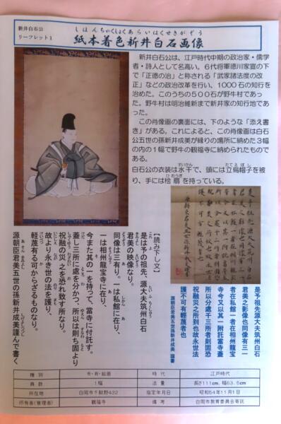 観福寺に保存されている新井白石公の肖像画 子孫が奉納したもの